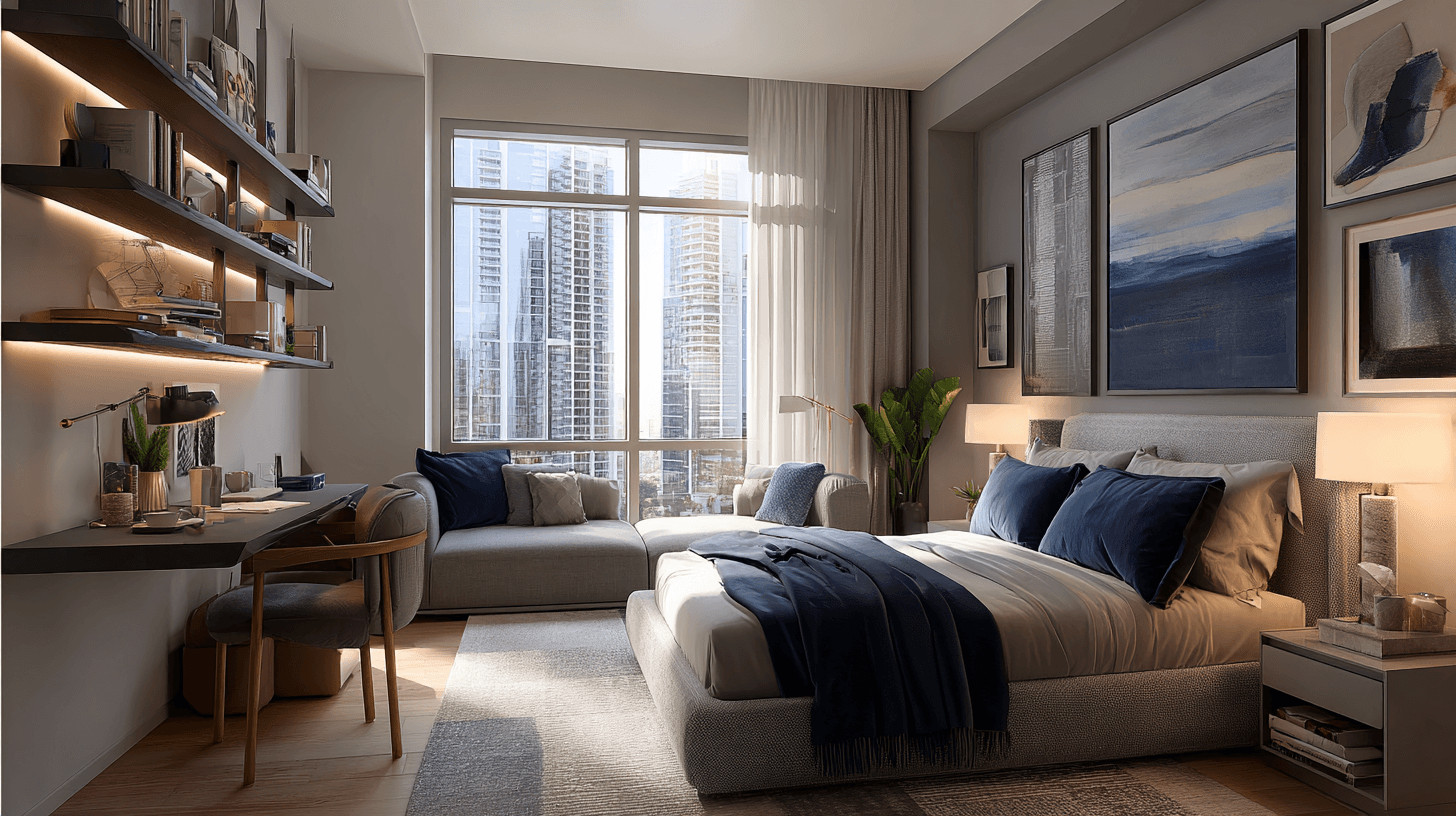 As the Best Interior Design Company in Dubai, we specialize in Luxury apartment interior design in Dubai, bringing an elevated look to every room. The Master bedroom apartment interior design in City Walk Dubai features soft lighting, calm tones, and custom furniture, while the second room reflects modern bedroom apartment interiors at City Walk with a clean and airy feel.From shaping your luxury Dubai apartment to planning a modern 3 bedroom apartment design in Dubai City Walk, Casa Kraft Interiors and Decoration delivers seamless results. If you’re building a Residential Home in City Walk Dubai or looking for a leading fit-out design company in Dubai, our team is ready to guide you with clarity and expertise in Modern bedroom design in Dubai.